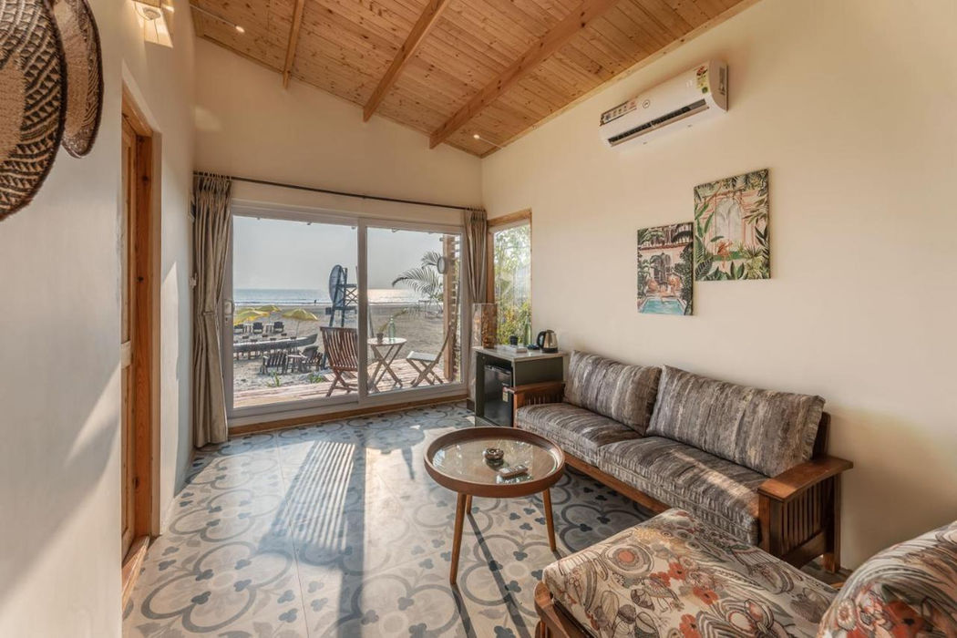 A tropical paradise away from the bustle of crowds, our property features five cozy wooden cottages with spacious, airy rooms set along the sandy shores of the beach, along with one luxurious modern villa—perfect for retreating and rejuvenating while creating unforgettable memories. Elegantly furnished with a blend of class and perfection, the property offers a serene escape where you can bask in Goa’s timeless natural beauty, with the Arabian Sea lapping against the pristine white sands of a sun-kissed shoreline.